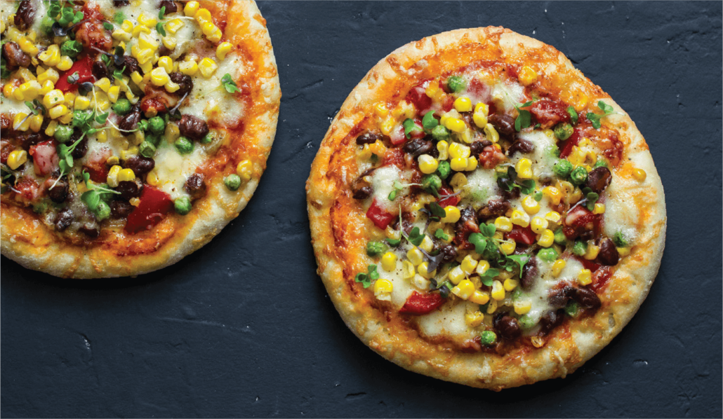 Вегетарианска пица със салца, зеленчуци и микс от сирена.