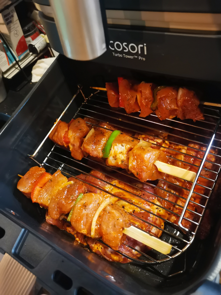 С Cosori Turbo Tower Pro използвате максимално пространството и приготвяте цялото меню с едно готвене. Благодарение на двете кошници и включената скара, долната кошница позволява готвене на две нива, за да приготвите повече за по-малко време.